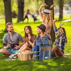 Deze handige picknick rugtas van Cabinmax is onmisbaar tijdens elke reis. Of je nu wilt dineren in het park of een familie picknick in het bos hebt georganiseerd. Ga je backpacken? Ook dan neem je deze mooie picknick tas met je mee. De picknick rugtas is gemaakt van RPET – een materiaal dat is afgeleid van gerecyclede plastic flessen. Elke tas is gemaakt van het equivalent van 26 plastic flessen van 500 ml en heeft details van veganistisch leer.
