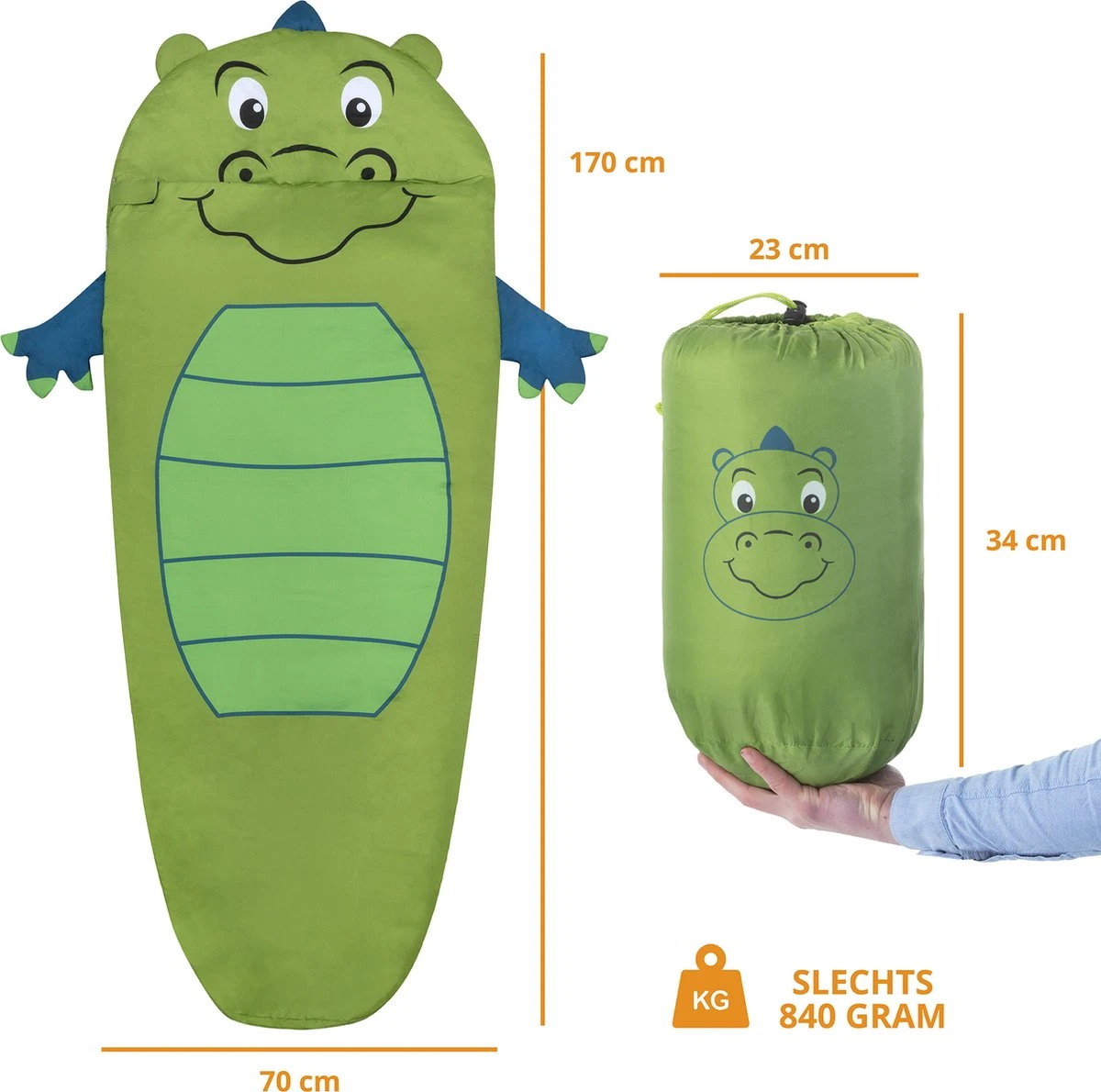 Dutch Mountains Kinderslaapzak Nijlpaard – 170 X 70cm Polyester – Zacht Lichtgewicht – Opberghoes
