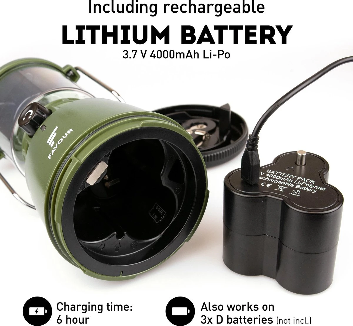 Wil je graag kampeerverlichting aan een balk of in de tent ophangen? Geen probleem, want er zijn twee ophangmogelijkheden. De campinglantaarn heeft een uitklapbare beugel en aan de onderkant van de lantaarn zit een geïntegreerde haak. Tip voor liefhebbers van direct licht: draai eenvoudigweg de lampenkap eraf. Daardoor verbeterd de lichtopbrengst waardoor de gehele tent verlicht kan worden.