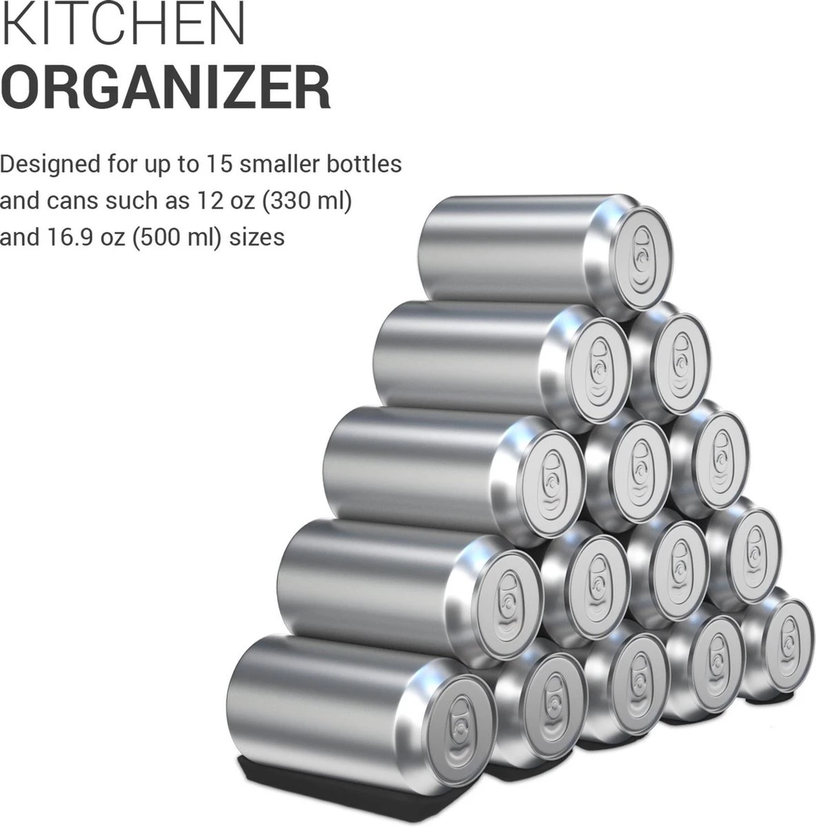 - PYRAMIDE: Met de flessenhouder kun je wijnflessen, waterflessen en blikjes makkelijk stapelen in de koelkast of op een plank in de opslag. Dit bespaart niet alleen ruimte, maar ziet er ook geordend uit.