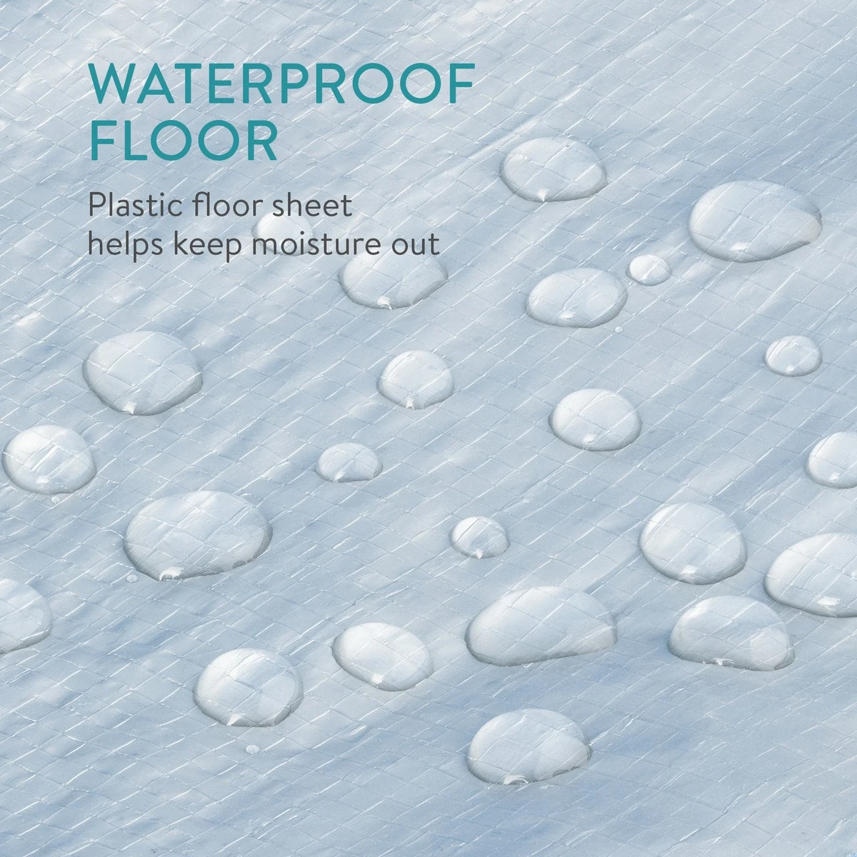 - SPEELTENT: Deze pop-up tent is ideaal voor kinderen om in te spelen. Doordat het vloerzeil waterdicht is, kunnen ze droog zitten en beschut tegen weer en wind spelen, ook als de ondergrond onder de tent vochtig is.