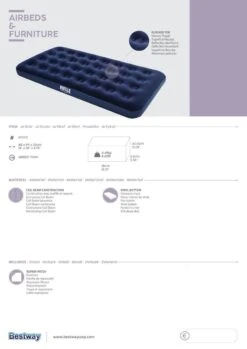 Dit tweepersoons Bestway luchtbed 67001, met een sterke vinyl spiraalbalk-constructie, is zeer comfortabel en perfect voor kamperen!