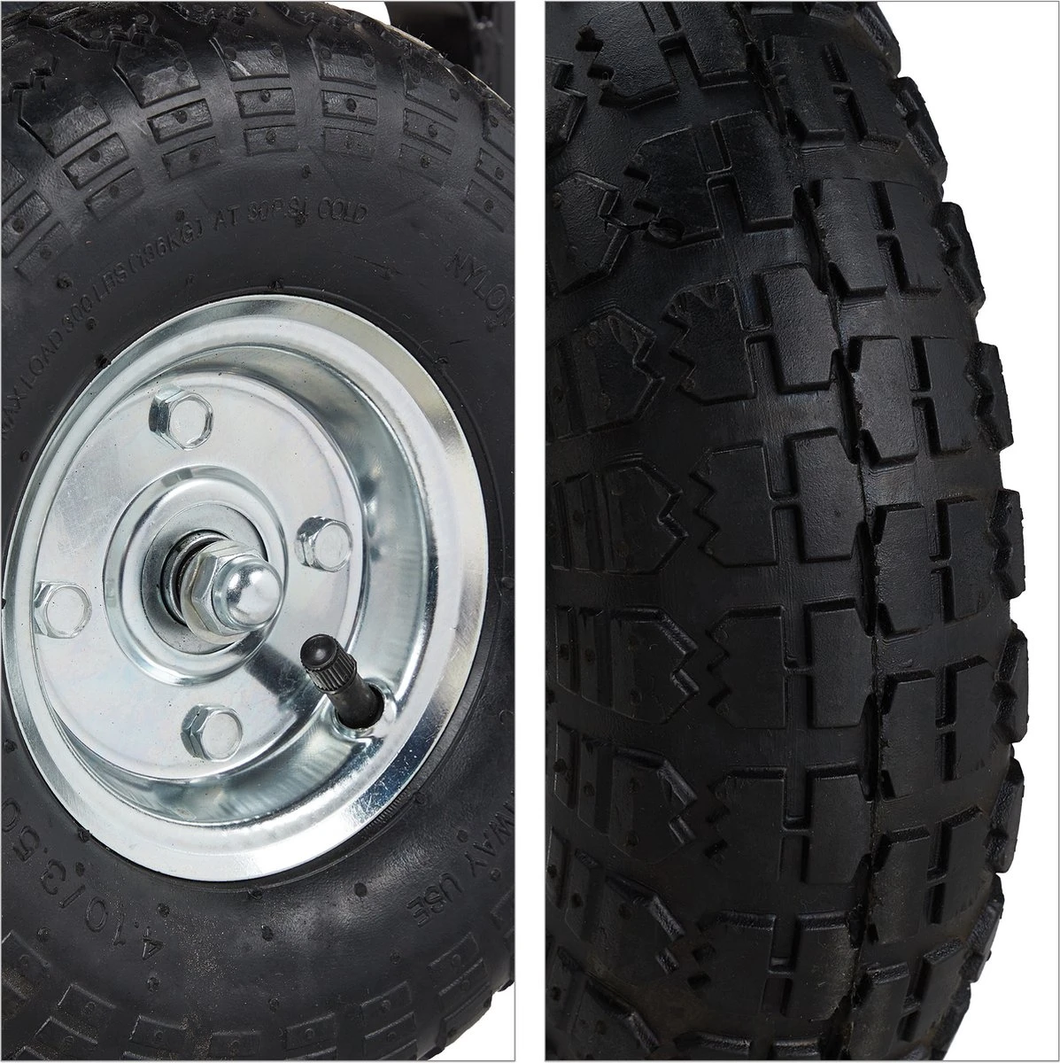 – Geprofileerde luchtbanden zodat dat de tuinkar vlot rijdt