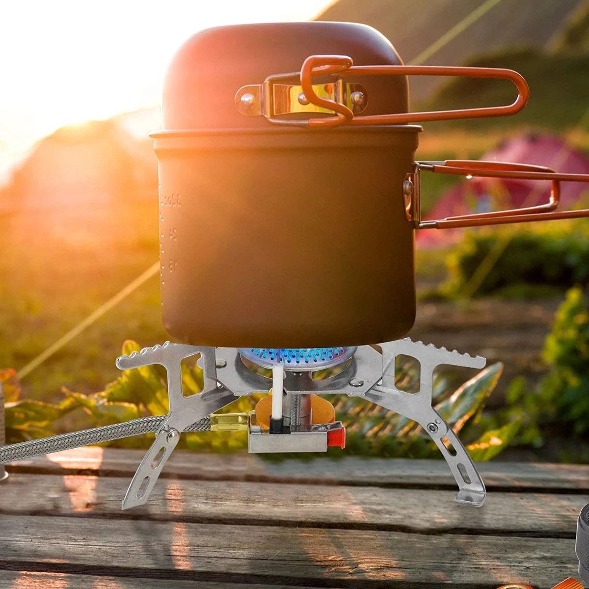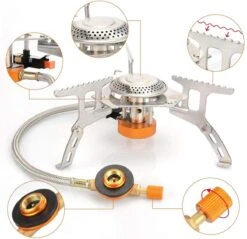 Deze ultralichte gasbrander is volledig inklapbaar en makkelijk mee te nemen in de handige opbergdoos.