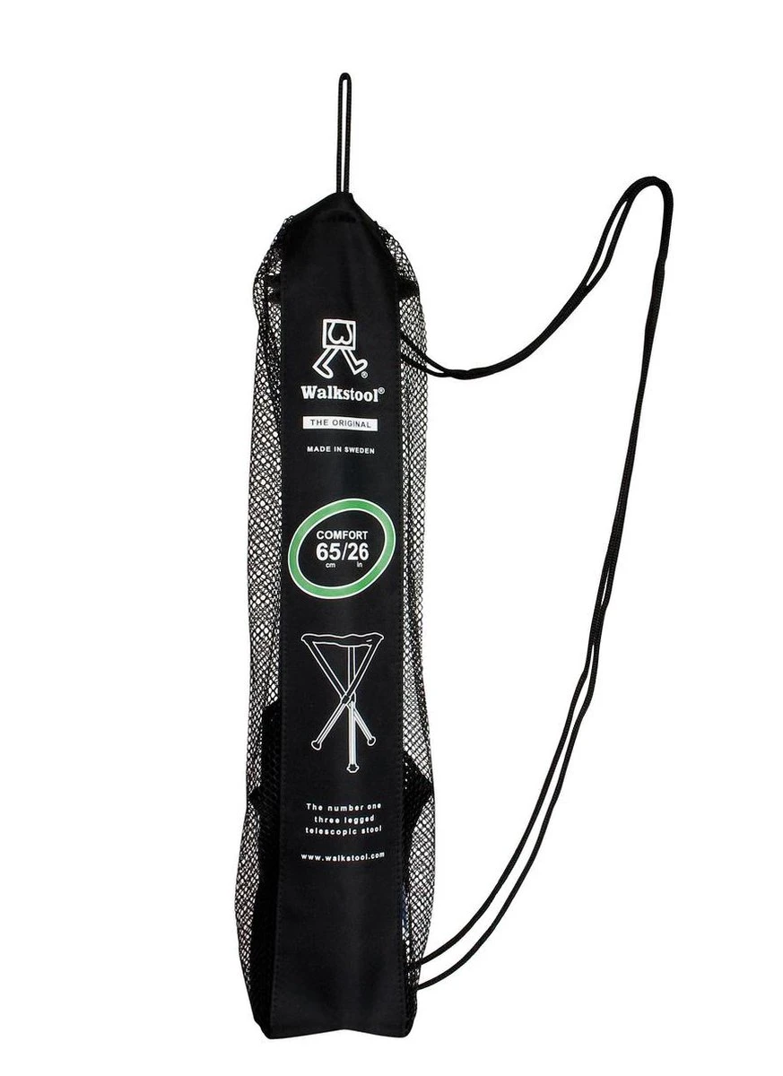Een zeer stevige en 3-poots kruk van hoge kwaliteit. De enige 3-poots kruk met telescopische poten! Hierdoor is deze kruk extreem compact mee te nemen. De kruk kan in diverse posities worden gebruikt. Zo kan deze kruk hoog, laag maar ook als steun om te liggen worden gebruikt. Het zitoppervlak is extra groot en geschikt voor een hogere belasting. Deze uiterst duurzame kruk is ideaal om mee te nemen door het lichte gewicht, de compacte afmeting en de handige meegeleverde draagtas. Extra comfortabel door de ruime textilene bekleding.